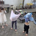 お庭の水遊びにクルミを入れてスープもできるし